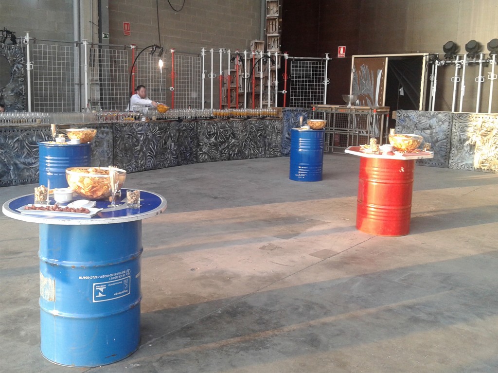 Claves decorativas: grandes centros colgantes (gracias a los altos techos), objetos industriales reciclados utilizados para otros fines (toneles metálicos como mesas altas, cajas de madera como estanterías o mesitas auxiliares…), paneles metálicos o de madera para organizar las mesas o para decoraciones murales, tuberías metálicas mezcladas con flores o velas como centros de mesa…
