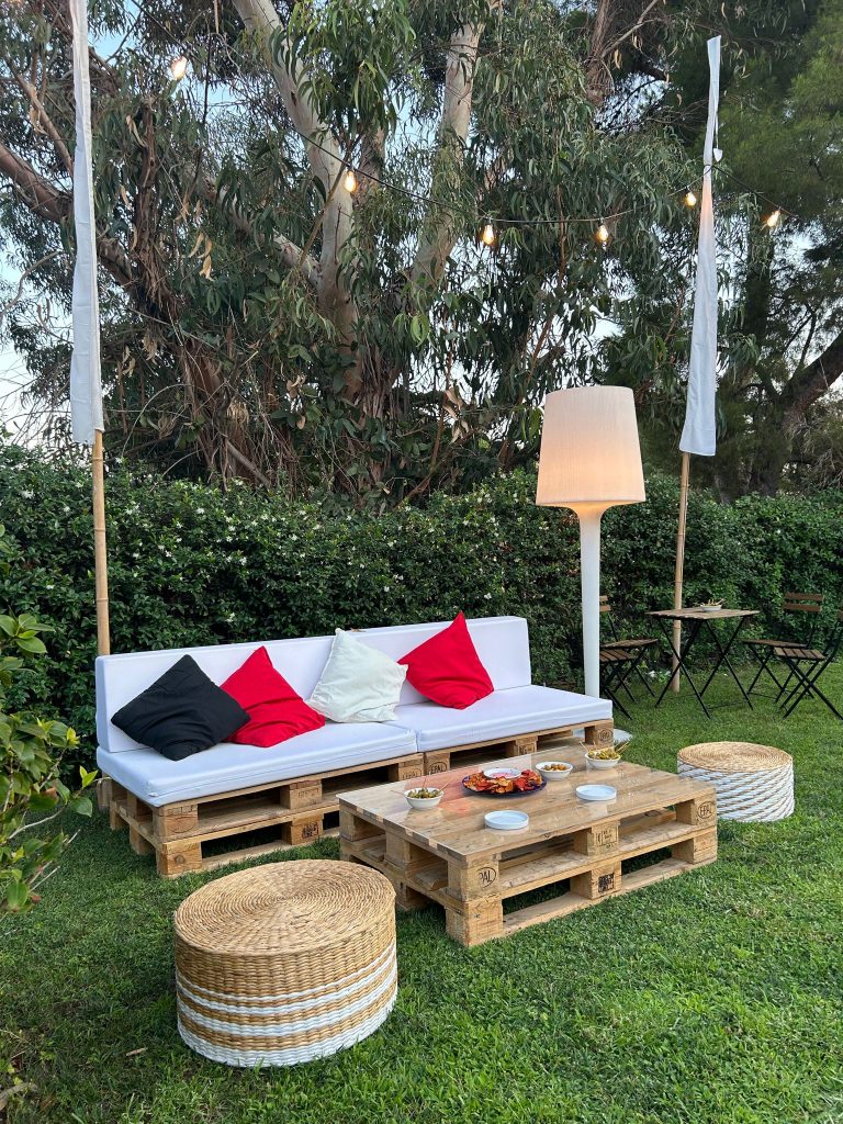 Las bodas avctuales no se limitan a mesa y pista de baile. Crear espacios de descanso, conversación y relax es ya imprescindible. Para eso, el mobiliario tipo chill-out es la solución perfecta. Optar por sofás bajos, puffs, sillones de madera con cojines y mesas auxiliares da personalidad al evento. Además, se pueden tematizar según el estilo elegido:- Bohemio: alfombras étnicas, faroles, cojines estampados.