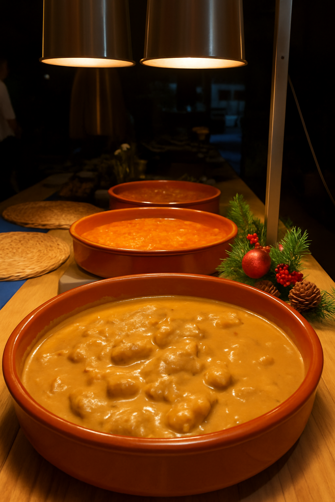 El menú debe equilibrar sabores festivos con practicidad para servir al aire libre. Piensa en platos que mantengan bien la temperatura y sean fáciles de comer: