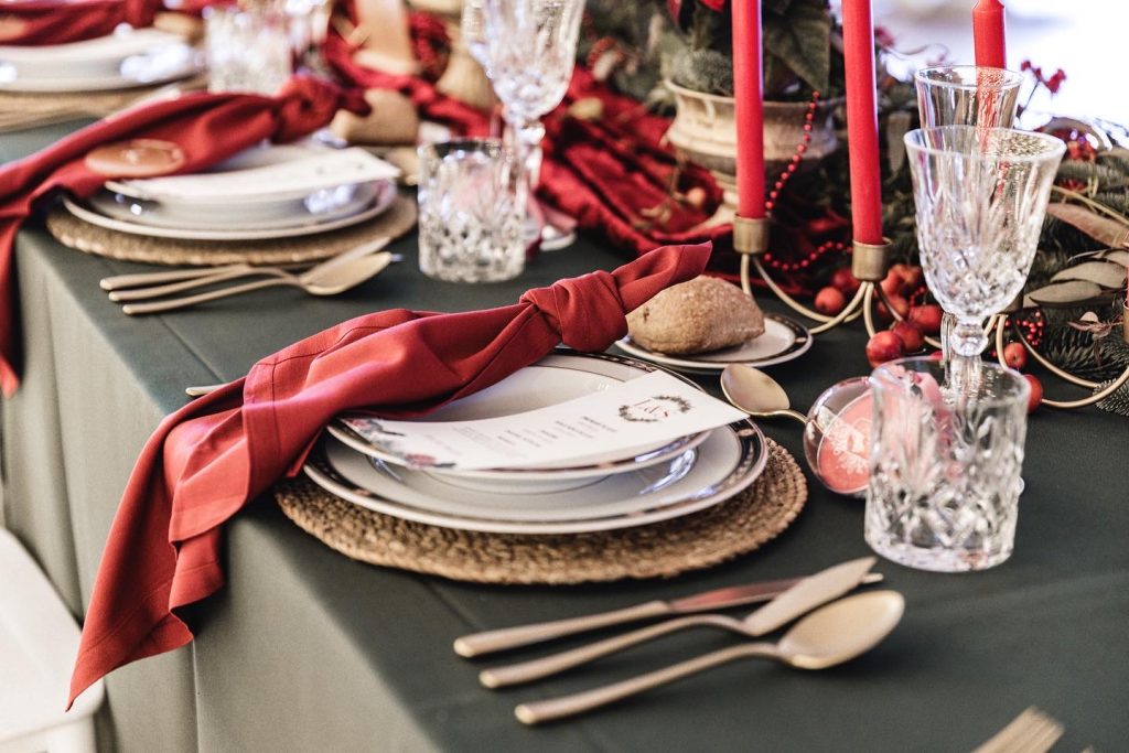 - Elige vajillas elegantes con detalles dorados o plateados para dar un toque festivo a tu mesa. O elementos especiales para servir un menú acorde con la época.