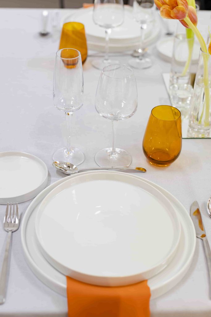 La elección de la vajilla puede hacer una gran diferencia en la presentación de la comida. Opta por alquilar vajilla de porcelana fina, disponible en una variedad de diseños y estilos, desde lo clásico hasta lo contemporáneo. Esta elección eleva la experiencia gastronómica y aporta un toque de lujo a la cena. No olvides también las opciones de cristal que igualmente son muy elegantes.