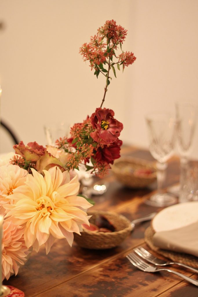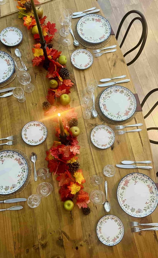 Para acentuar la calidez del entorno, presta especial atención a la decoración de las mesas y el ambiente general:- Centros de mesa otoñales: Usa flores en tonos cálidos, velas y detalles naturales como piñas o ramas secas. Los candelabros de metal o cristal aportan un toque sofisticado.
