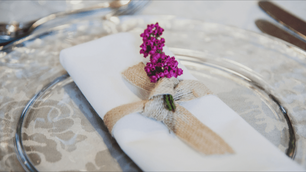 Las servilletas son uno de los elementos más subestimados en la decoración de bodas. Una servilleta de calidad, bien doblada y coordinada con el resto de la mantelería, añade ese toque de refinamiento que los invitados sí notan. Mi recomendación es no escatimar en las servilletas. Una servilleta de tela de buena calidad se siente completamente diferente a una barata por muy de moda que estén los flecos por ejemplo, y esa diferencia se transmite inmediatamente a tus invitados.