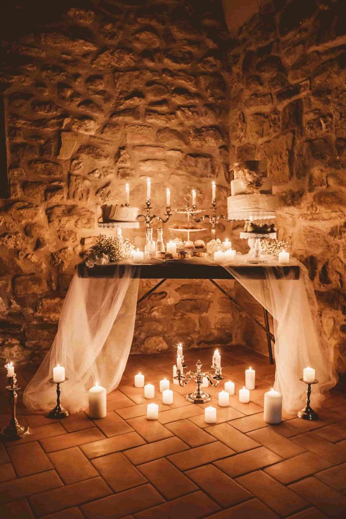 La iluminación es fundamental para crear un ambiente romántico. Las guirnaldas de luces, faroles y candelabros altos son tendencias que continúan vigentes para 2024. Alquila elementos de iluminación que aporten un toque nostálgico y resalten la belleza de tu boda.