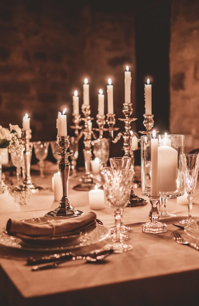 - Candelabros y Velas La iluminación de las mesas con candelabros y velas crea una atmósfera cálida y acogedora. Opta por candelabros dorados o negros para un toque de elegancia, o velas de diferentes tamaños para un look más bohemio. Esta iluminación suave no solo mejora la ambientación, sino que también añade un toque de sofisticación a la decoración de tu boda.