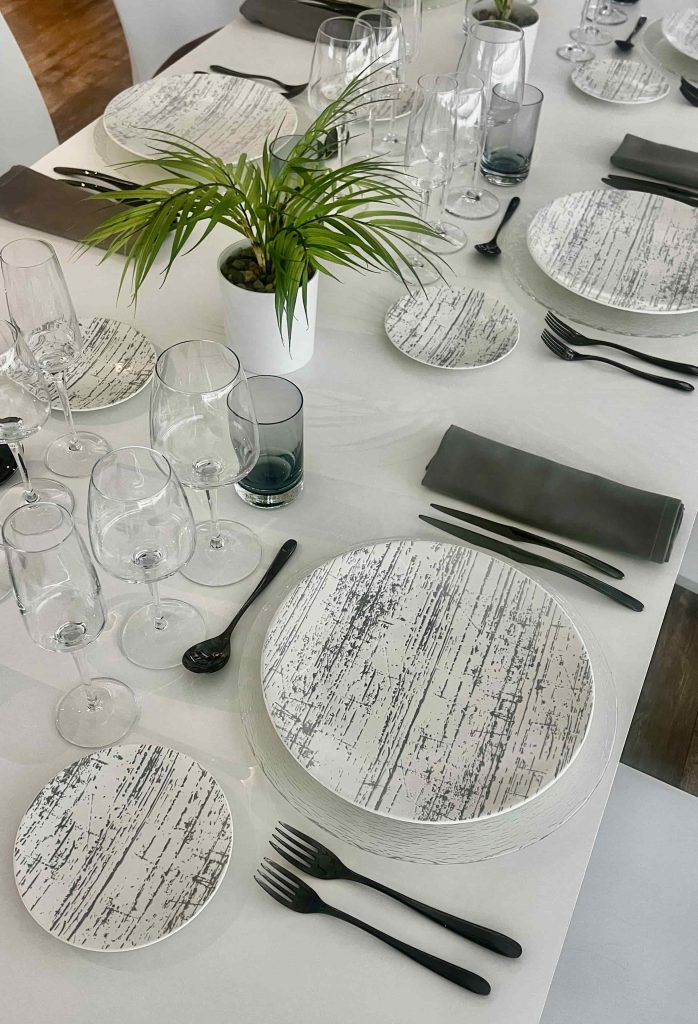 - Vajilla de Porcelana La elección de la vajilla puede hacer una gran diferencia en la presentación de la comida. Opta por alquilar vajilla de porcelana fina, disponible en una variedad de diseños y estilos, desde lo clásico hasta lo contemporáneo. Esta elección eleva la experiencia gastronómica y aporta un toque de lujo a la cena, haciendo que cada plato se vea aún más apetitoso. Tampoco hay que olvidar los platos de cristal como una buena elección.